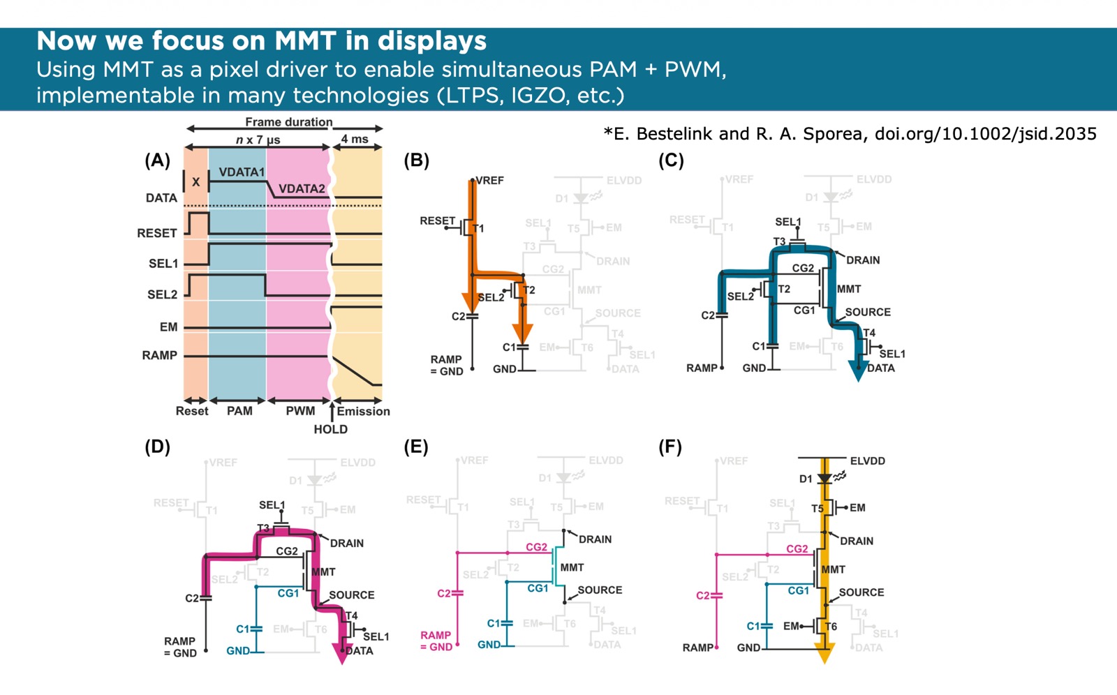 In display applications, Sporea’s group have developed a 7T2C (6T1M2C) pixel driver which can offer simultaneous pulse amplitude (PAM) and width (PWM) modulation and that can be an advantage in many displays using LTPS, IGZO or even amorphous silicon.